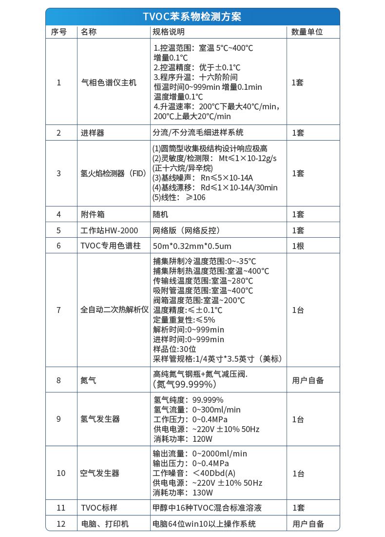 | 其他 | 試劑和前處理設備 | 標準中要求 | 用戶自備 | |